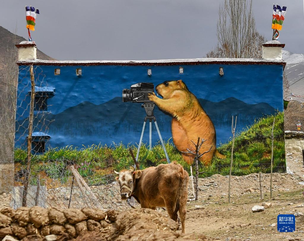 這是4月10日在拉薩市達(dá)孜區(qū)章多鄉(xiāng)恰村拍攝的墻畫。新華社記者 晉美多吉 攝