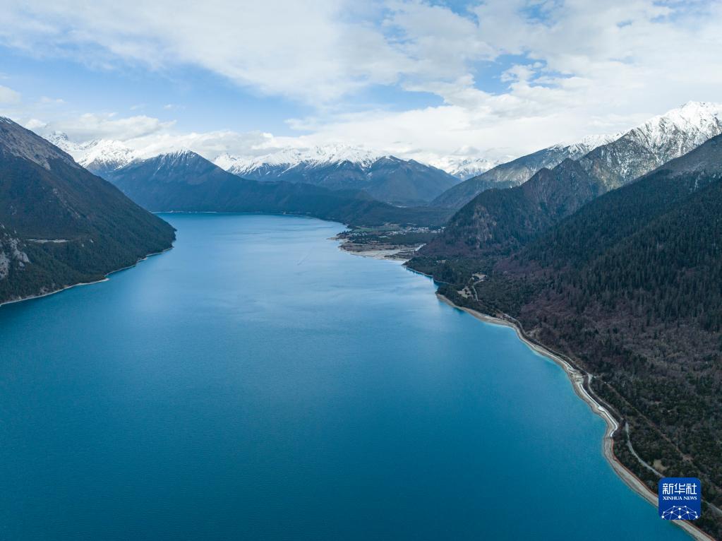這是4月15日拍攝的巴松措風(fēng)光(無(wú)人機(jī)照片)。新華社記者 孫非 攝