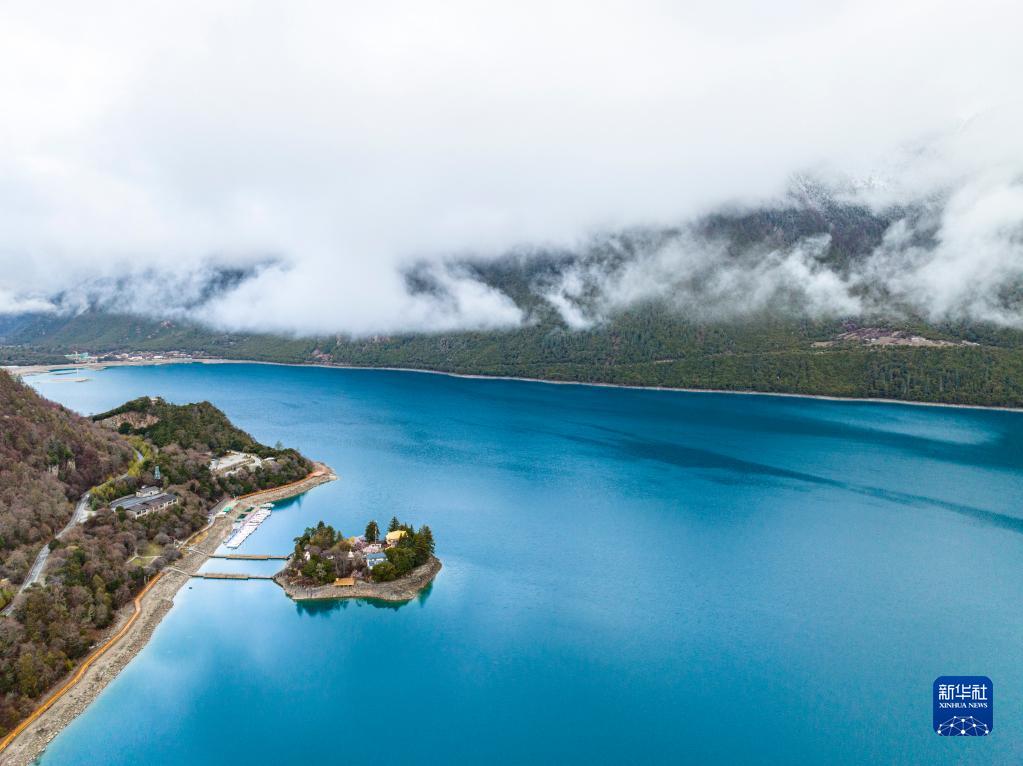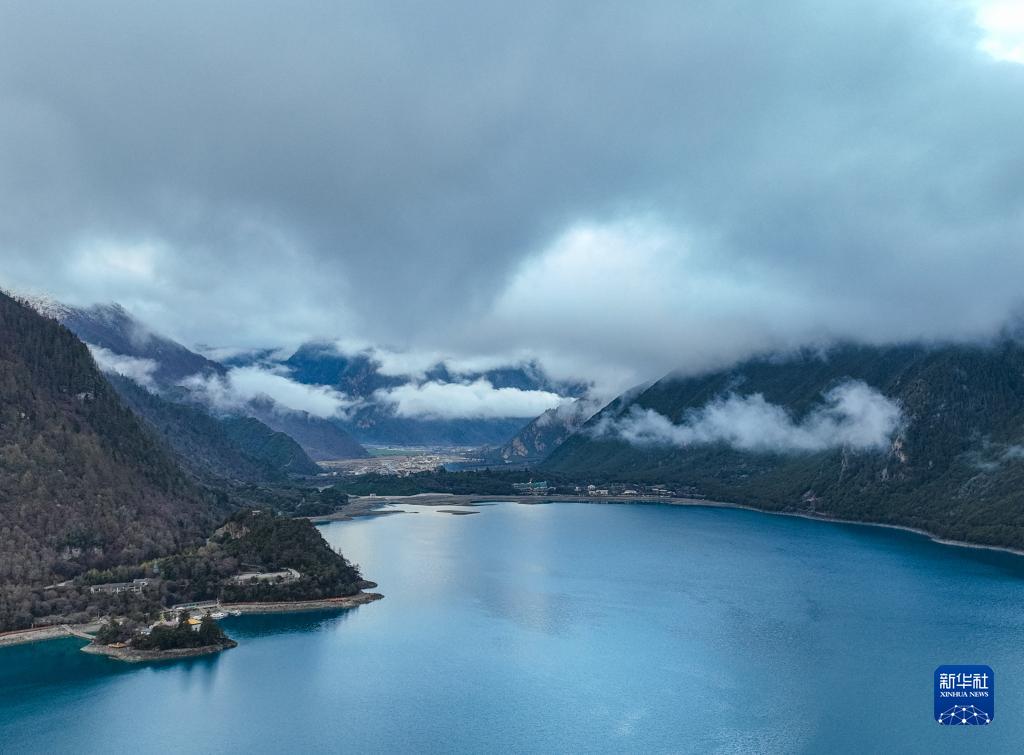 4月17日拍攝的巴松措(無人機(jī)照片)。新華社記者 曹檳 攝