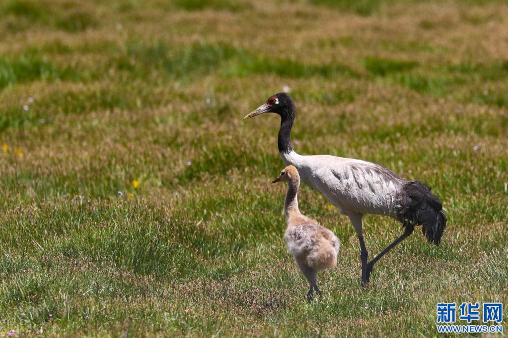 西藏改則縣麻米鄉(xiāng)成長(zhǎng)中的黑頸鶴(2022年7月25日)。新華社發(fā)(邊巴 攝)