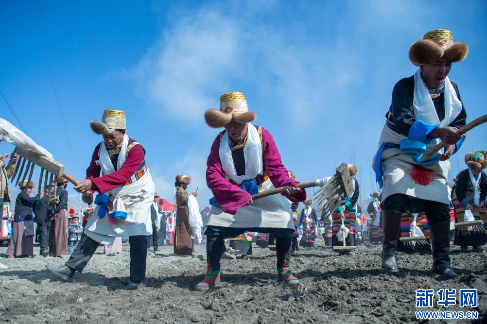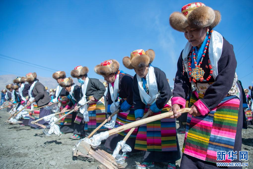 3月16日,克松社區(qū)居民在參加春耕儀式。新華網(wǎng) 旦增努布 攝 ??