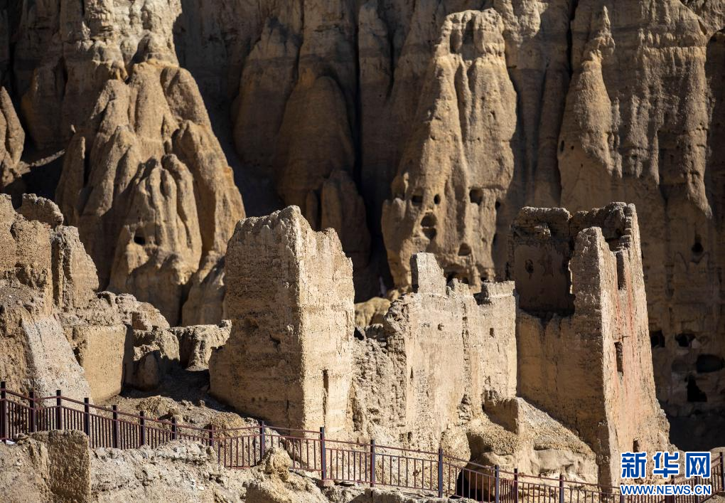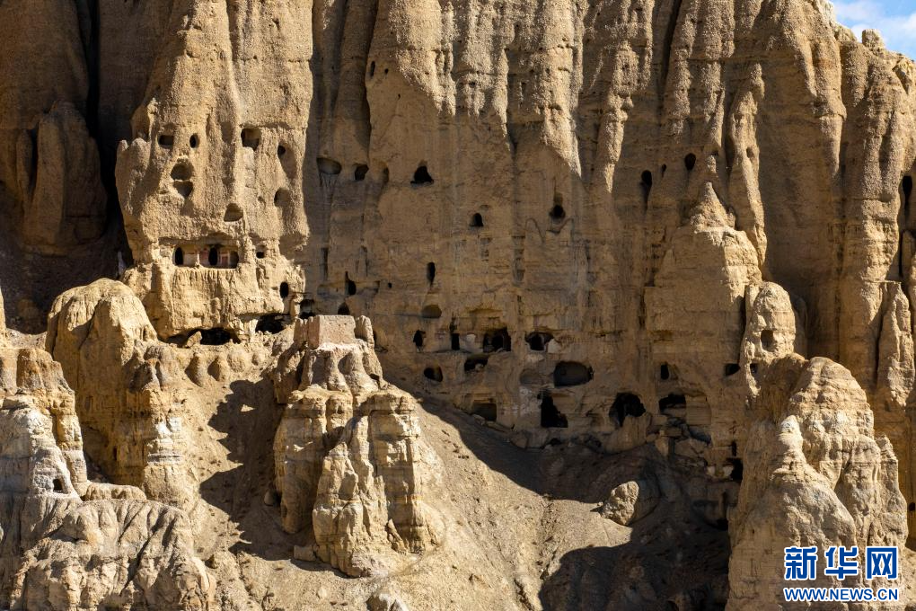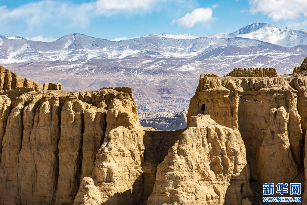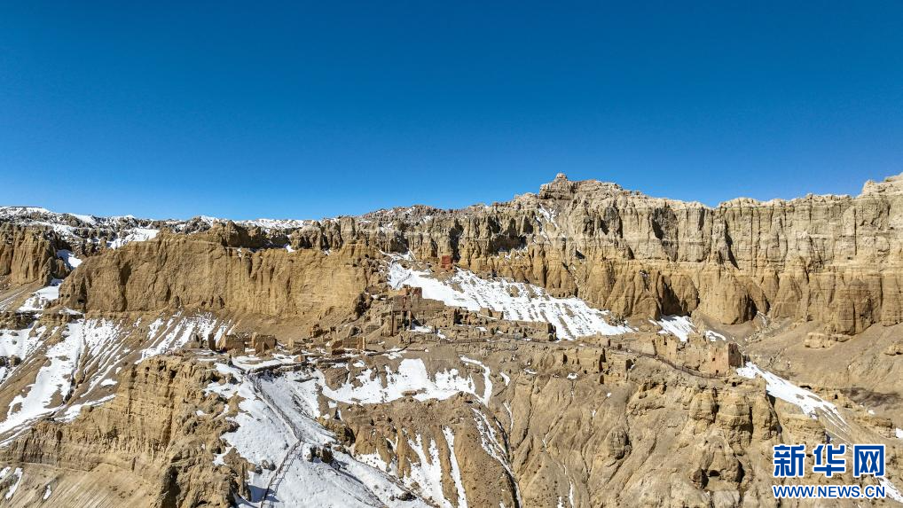 達(dá)巴遺址位于西藏阿里地區(qū)札達(dá)縣境內(nèi),其主要建筑分布在兩座山脊之上,整個遺址共有洞穴200余處,且有獨(dú)立的碉樓、寺廟建筑遺跡、居民窯洞等建筑,在白雪的映襯下,顯得格外雄渾而神秘。