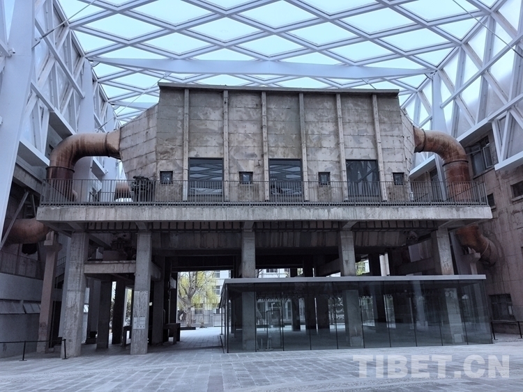 這座在拉薩水泥廠基礎(chǔ)上改造建設(shè)的美術(shù)館,充分利用老廠房原有設(shè)施和條件,將原水泥廠的工業(yè)遺址元素巧妙融入到美術(shù)館的設(shè)計當(dāng)中,用藝術(shù)的形式呈現(xiàn)出西藏工業(yè)文化和紅色文化記憶。