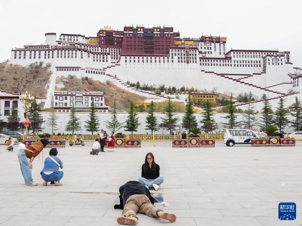 5月5日,游客在布達拉宮廣場拍照留念。新華社記者 丁汀 攝
