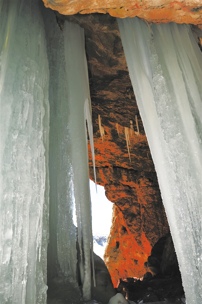 溶洞內(nèi)的冰柱。