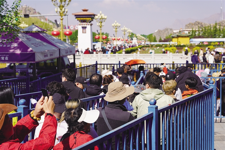 5月27日,上海游客陳女士乘火車抵達拉薩。這次進藏旅游,她給自己安排了15天的行程,其中有4天專門留給拉薩?!霸缇吐犝f‘拉薩人的清晨是從一杯甜茶開始的’,我和朋友今天沒什么事,就打算去甜茶館吃藏面、喝甜茶、和本地人聊聊天,感受一下這里的人文風情。”陳女士說道。