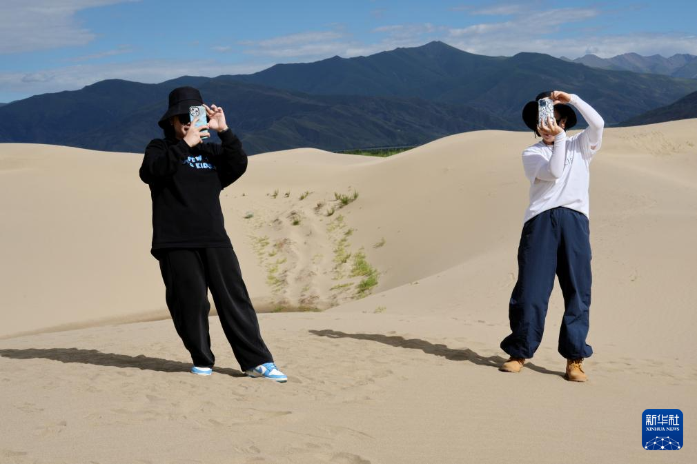 游客在扎囊國家沙漠公園里拍照(7月30日攝)。新華社記者 張汝鋒 攝 ??