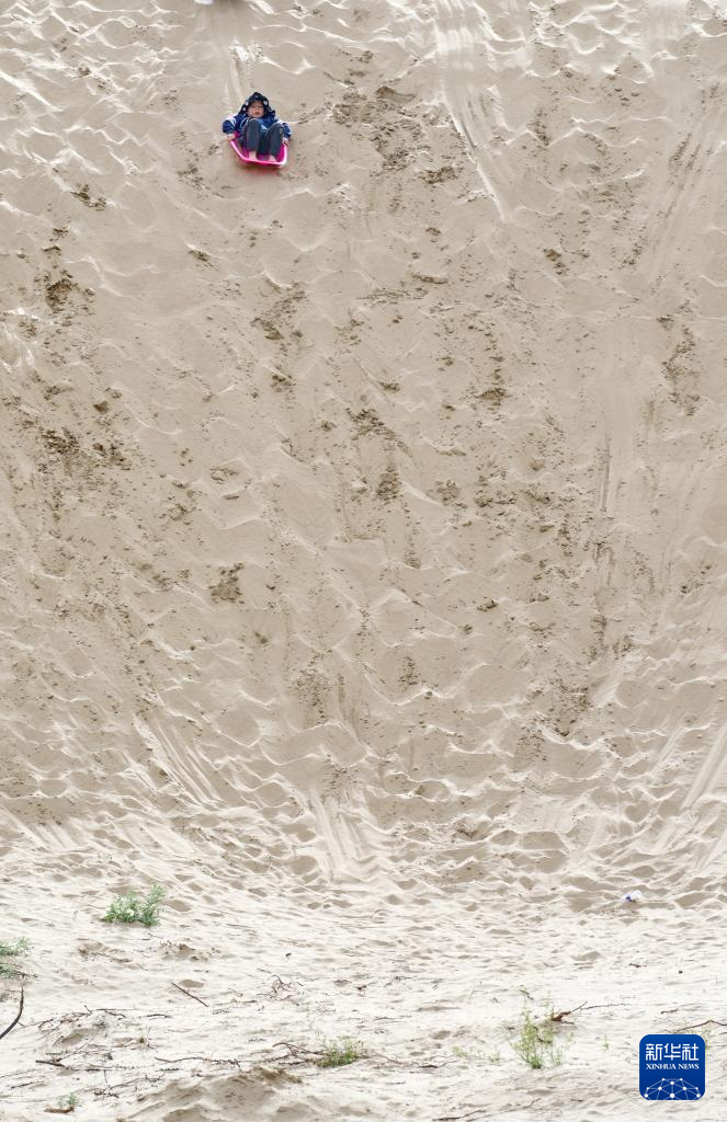 小朋友在扎囊國家沙漠公園里滑沙(7月30日攝)。新華社記者 張汝鋒 攝 ??