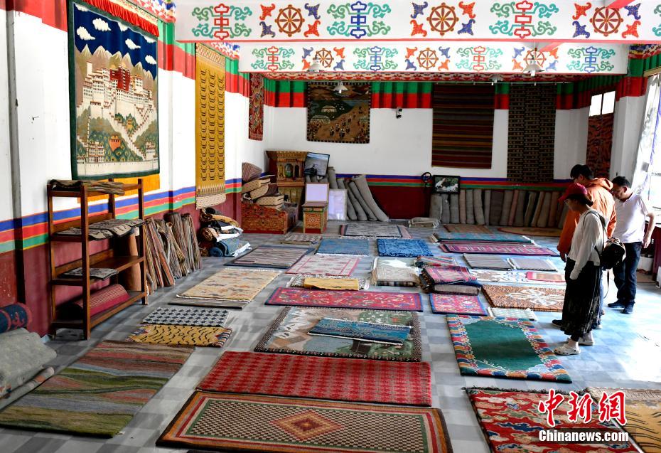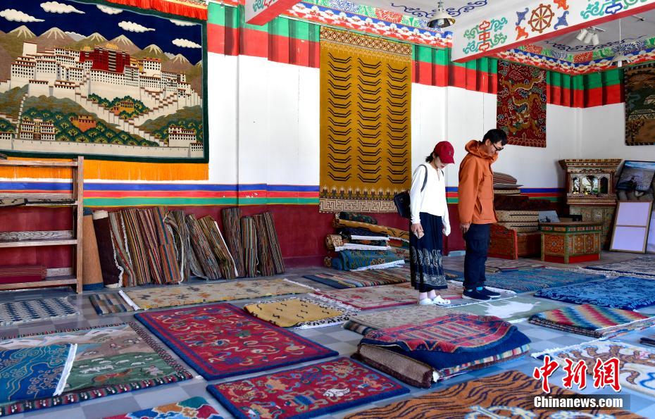 藏毯是世界三大名毯之一,以艷麗的色彩、濃厚的民族風(fēng)格、鮮明的地域特色聞名遐邇。圖為8月16日,西藏拉薩的一家藏毯廠里,游客選購(gòu)圖案精美的藏毯。中新社記者 李林 攝