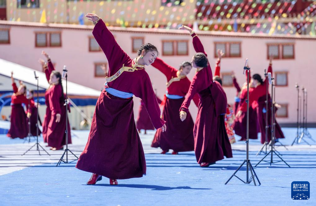 8月19日,演員在第十屆三江茶馬文化藝術(shù)節(jié)開幕式上跳起傳統(tǒng)舞蹈。新華社記者 旦增尼瑪曲珠 攝