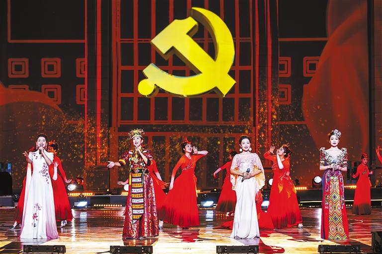 湖南、湖北、安徽三省和中糧集團對口支援山南以來,一批又一批援藏干部人才把山南當作第二故鄉(xiāng),與各族人民結下了跨越山海的深情厚誼。短片《只為你唱的歌》,展示援藏工作者背后的故事和家屬日常生活中的酸甜苦辣。情境合唱《追風趕月的人》,是一場為所有援藏工作者精心設計的特別演出,他們的家屬共同帶來了一首溫情之歌,送出了家屬們對援藏工作者的堅定支持和無盡的愛。女子群舞《格桑芙蓉并蒂開》,展現(xiàn)了湖南、山南兩地人民心手相牽的美好畫面?!俺礁杞o黨聽,我把黨來比母親……”山南市三小格?;ê铣獔F孩子們的聲音直抵人心,隨后湖南、湖北、安徽和山南的歌手們共同唱響《唱支山歌給黨聽》。