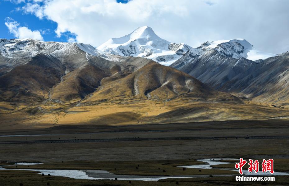 9月29日,金秋時(shí)節(jié),藏北草原褪去了夏季的翠綠,換上了金色的盛裝。在陽光的照耀下,金黃的草甸、雪山、牛羊、村莊、河流相映成趣,構(gòu)成了一幅美不勝收的畫卷。