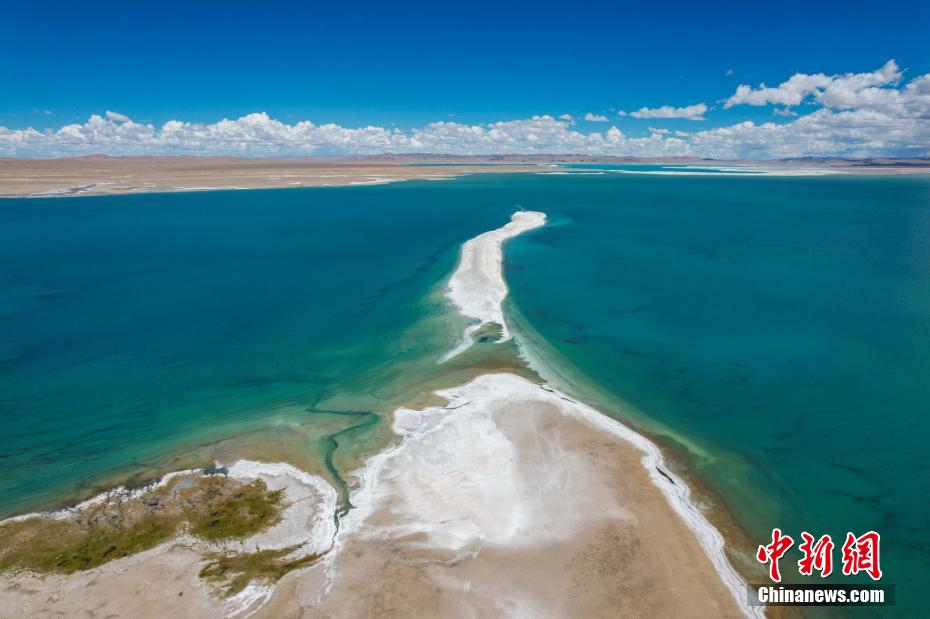 國(guó)慶期間,中新網(wǎng)記者自駕西藏藏北羌塘草原,途經(jīng)“天湖”納木錯(cuò),高原鹽湖班戈湖以及西藏第一大湖色林錯(cuò)等地。秋天高原藍(lán)天白云的映襯下,藏北湖泊猶如一面面巨大的“寶石藍(lán)”鏡子鑲嵌于高原大地,景色壯麗。圖為10月2日,航拍西藏第一大湖色林錯(cuò)北岸風(fēng)光。記者 江飛波 攝
