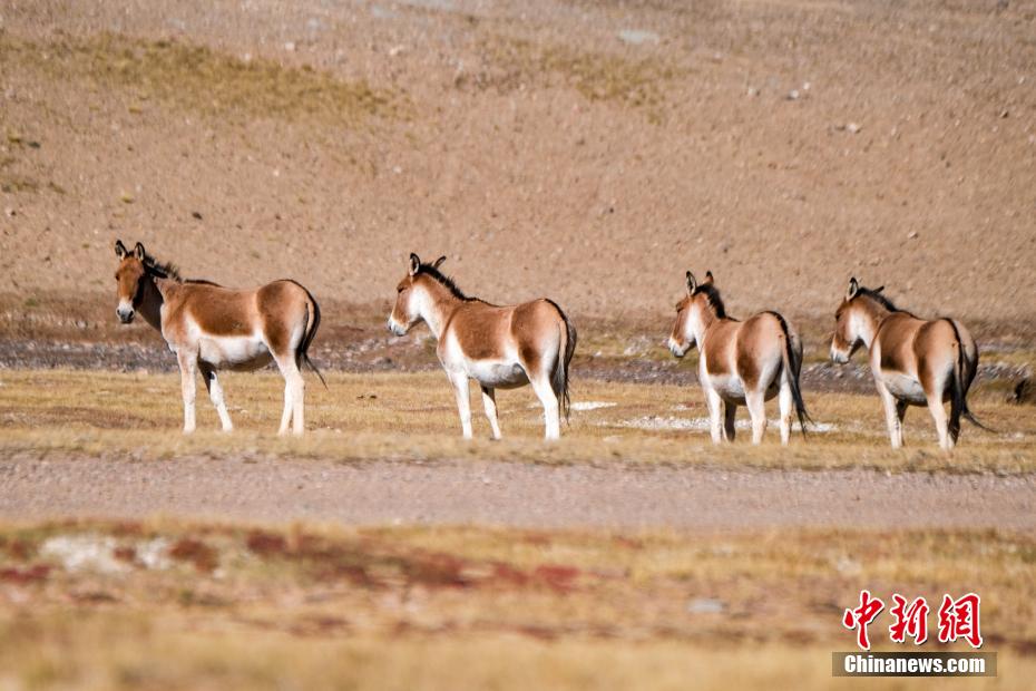 西藏羌塘草原位于昆侖山脈、唐古拉山脈和岡底斯山脈之間,是野生動植物的天堂。近日,中新社記者探訪西藏羌塘草原腹地那曲市雙湖縣,看到當?shù)夭亓缪?、藏野驢、藏原羚等野生動物成群覓食,悠然自得。