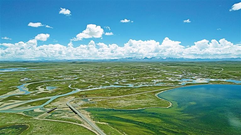 圖為三江源國家公園唐北區(qū)域聶榮片區(qū)尼日阿錯改湖濕地鳥瞰圖。記者 萬靖 攝