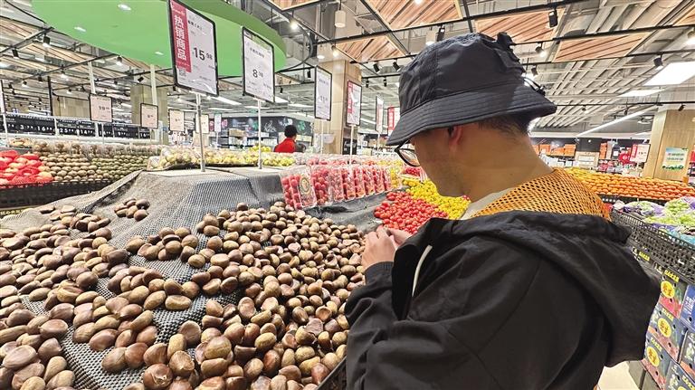 10月10日,記者在拉薩市娘熱路的一家超市看到,一顆顆新鮮的板栗被擺放在貨架上,果形飽滿、光澤誘人,引得不少市民駐足挑選?!懊磕赀@個(gè)季節(jié)我都會(huì)買一些板栗,不僅因?yàn)樗鼈兾兜篮?,而且?duì)身體也有好處?!崩_市民張女士告訴記者:“前兩天,我在超市里看到有新鮮板栗賣,價(jià)格也不貴,每斤20元左右,這次準(zhǔn)備多買一些回去儲(chǔ)存起來(lái)?!?/p>