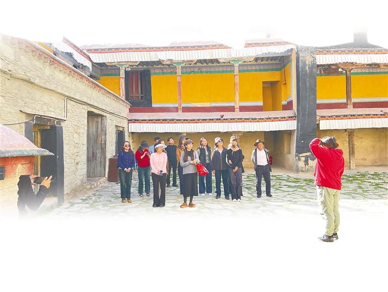 圖為去瓊結·過林卡大會活動中,游客在強吉林卡散步賞景。記者 汪純 攝