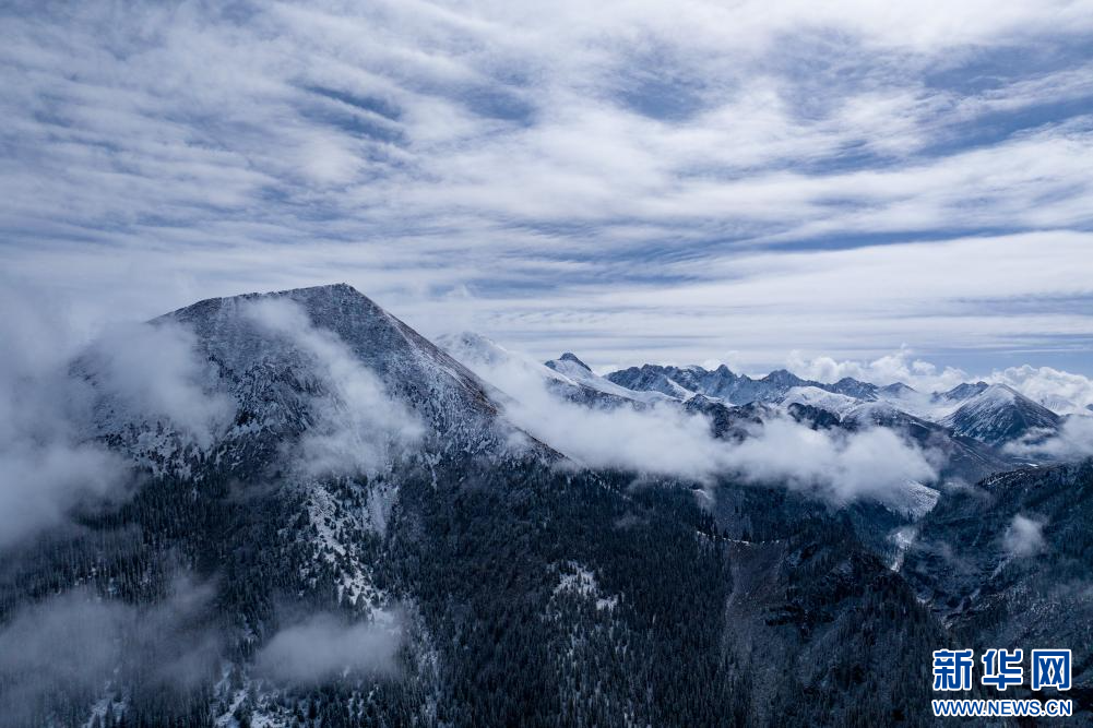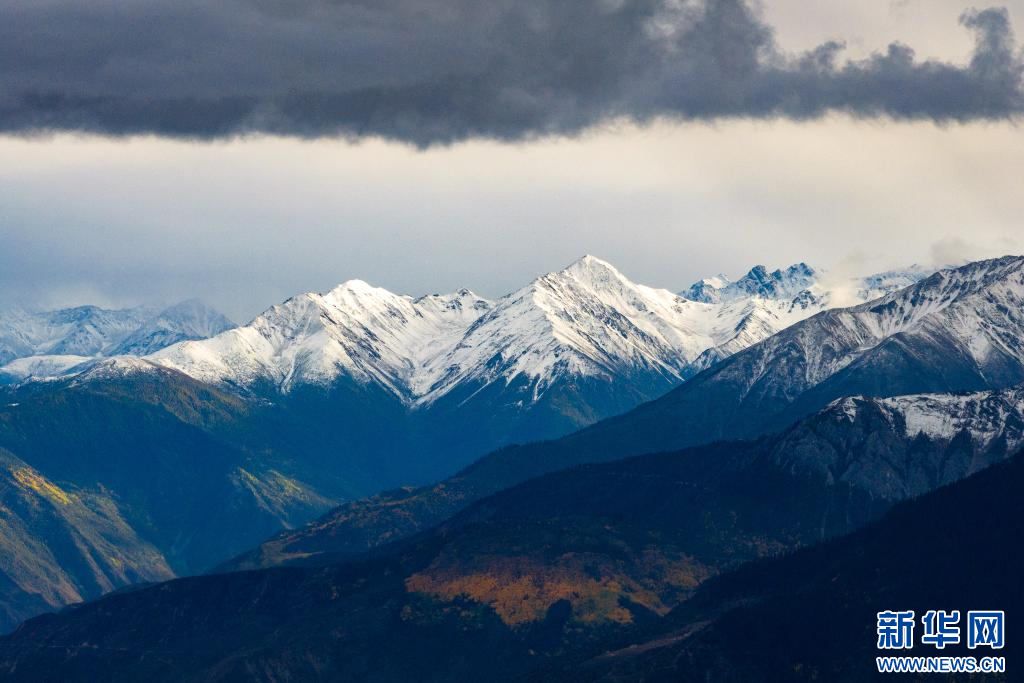 10月13日,在西藏昌都市八宿縣境內(nèi)川藏公路沿途拍攝的雪山(無(wú)人機(jī)照片)。新華網(wǎng) 旦增努布 攝