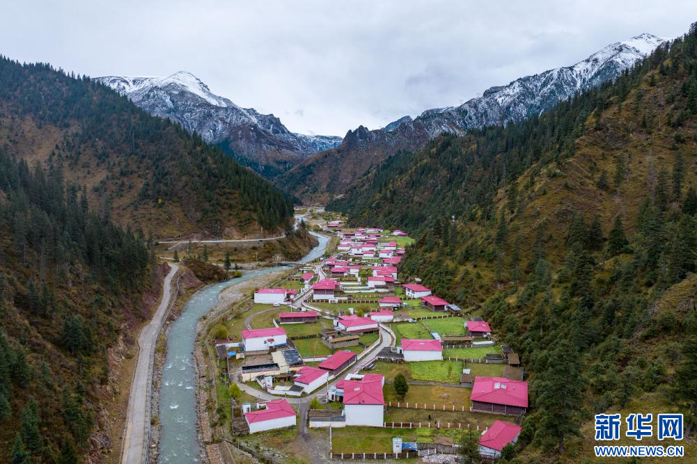 10月21日拍攝的“西藏解放第一村”昌都市江達(dá)縣崗?fù)写宀厥綐欠浚o(wú)人機(jī)照片)。新華網(wǎng) 旦增努布 攝