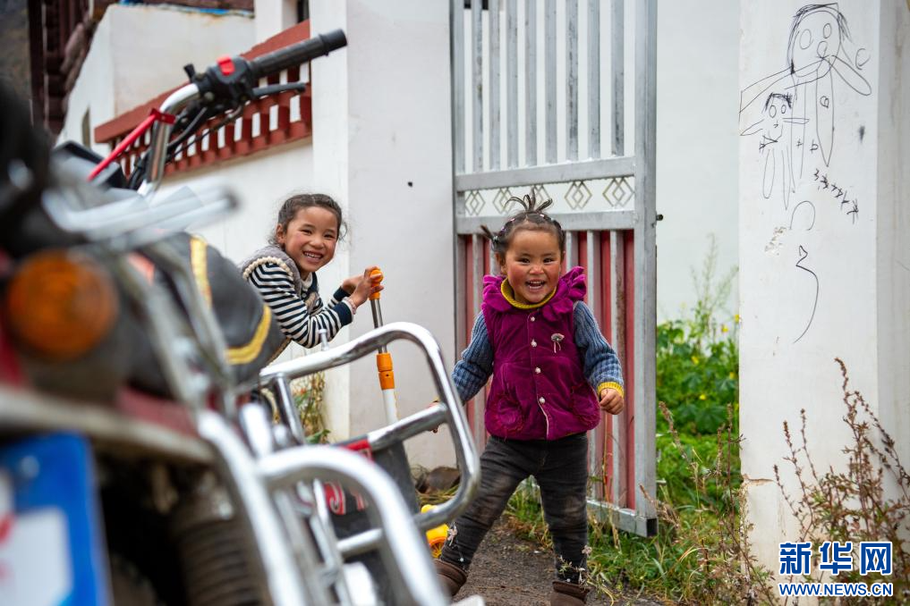 10月19日,在西藏昌都市卡若區(qū)境內(nèi)拍攝的小朋友(無(wú)人機(jī)照片)。新華網(wǎng) 旦增努布 攝