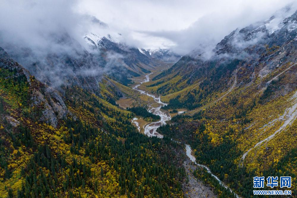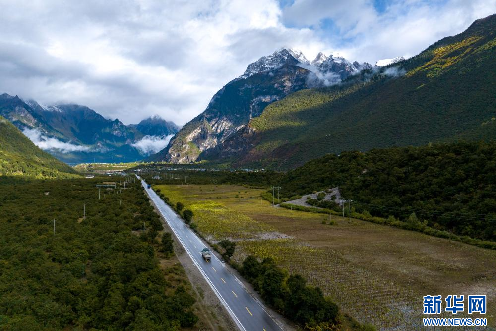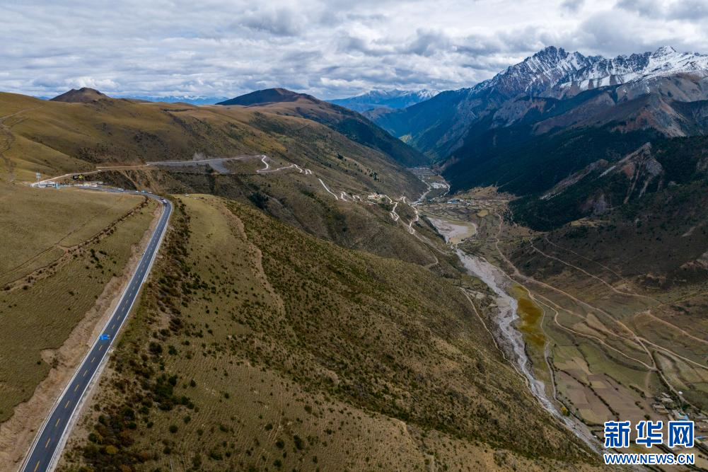 10月19日拍攝的川藏公路沿途風(fēng)景(無(wú)人機(jī)照片)。新華網(wǎng) 旦增努布 攝