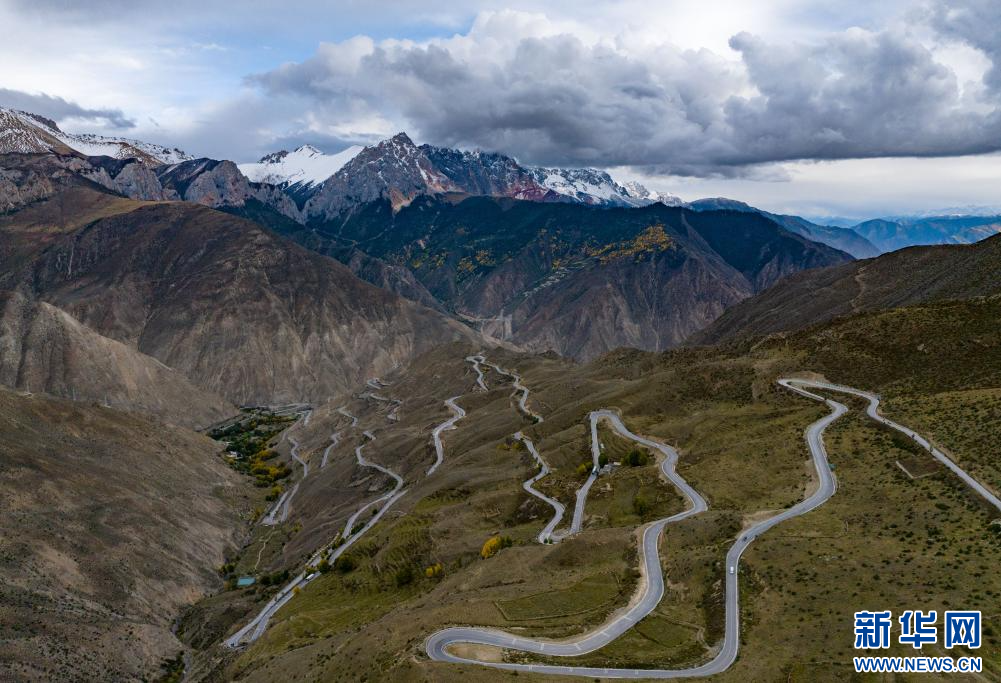 10月13日拍攝的川藏公路“怒江72拐”(無(wú)人機(jī)照片)。新華網(wǎng) 旦增努布 攝