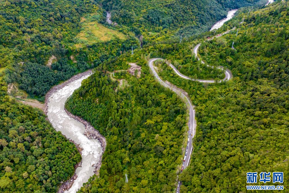 10月11日,在西藏林芝市波密縣境內(nèi)拍攝的川藏公路(無(wú)人機(jī)照片)。新華網(wǎng) 旦增努布 攝