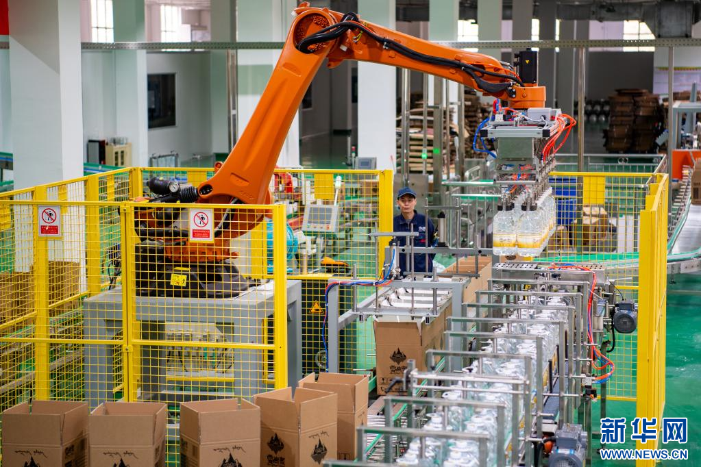 10月21日拍攝的江達縣凈界天然飲用水有限責(zé)任公司的產(chǎn)品生產(chǎn)流水線。該公司依托當?shù)睾0?500米的天然涌泉,打造天然飲用水。新華網(wǎng) 旦增努布 攝