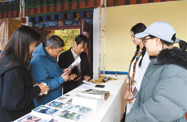 圖為市民在展覽現(xiàn)場(chǎng)打卡蓋章。記者 索朗旺久 攝
