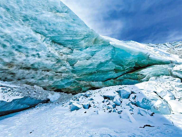 近日,昌都市邊壩縣邊壩鎮(zhèn)普玉一村發(fā)現(xiàn)一處大型冰洞,當(dāng)?shù)厝罕姺Q(chēng)其為“普玉冰洞”,藏語(yǔ)意為“最深處的冰洞”。冰洞呈優(yōu)美的弧形結(jié)構(gòu),自然形成,在陽(yáng)光的照射下,冰壁晶瑩剔透,十分壯美?! ?/p>