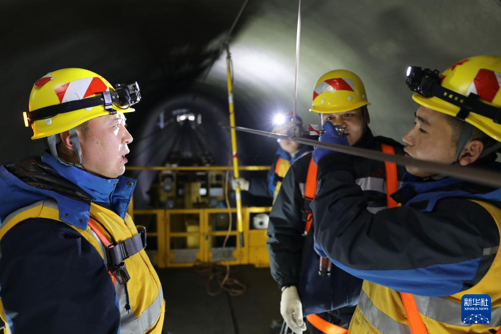 18日,在拉林鐵路色拉丘隧道內(nèi),拉薩基礎設施段林芝綜合維修車間的接觸網(wǎng)軌道作業(yè)車緩緩前行。5米高的作業(yè)平臺上,接觸網(wǎng)工人劉海軍手持工具,專注地為接觸網(wǎng)更換絕緣子,工具在接觸網(wǎng)設備間靈活穿梭。