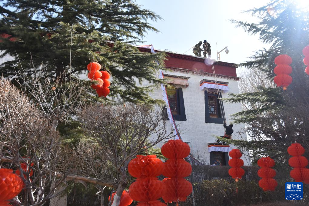 2月18日,布達(dá)拉宮管理處工作人員更換“香布”。新華社記者 春拉 攝