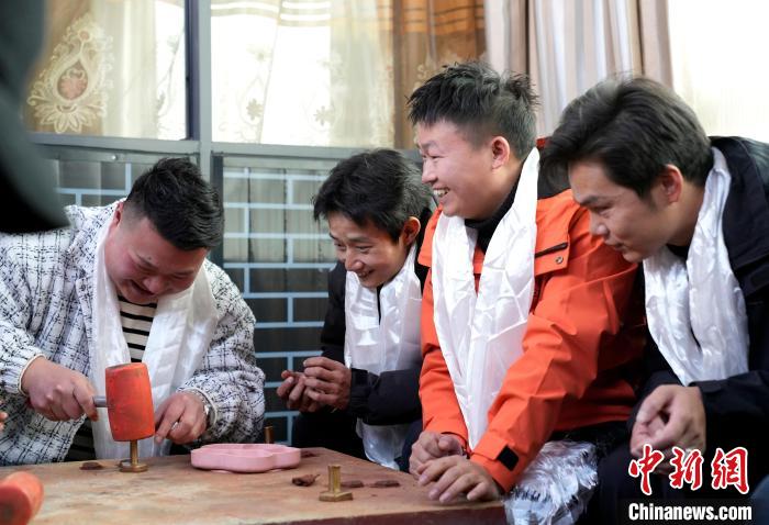 擦擦一詞是藏語(yǔ)對(duì)梵語(yǔ)的音譯,意為“復(fù)制”,是在擦模中捺入軟泥等材質(zhì),壓制成型的小型佛造像,西藏特有的脫模泥塑藝術(shù)。圖為3月2日,在西藏拉薩北郊的西藏擦擦文化展覽館,游客體驗(yàn)制作擦擦。中新社記者 李林 攝