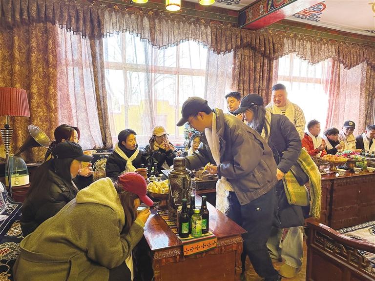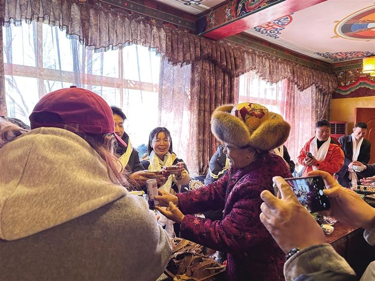 來自東北遼寧的于先生是第一次過藏歷新年,一切都讓他感到新奇不已。他一邊不停地拍照,分享給遠(yuǎn)方的家人,一邊興奮地介紹說:“我不僅品嘗到了美味的藏式佳肴,更深入了解了藏歷新年習(xí)俗,這份跨越文化的溫暖與情誼,將成為我記憶中最珍貴的新年禮物,希望明年還有機(jī)會(huì)過藏歷新年?!庇谙壬脑捳Z,道出了許多游客的心聲。在這個(gè)特別的新年里,他們收獲的不僅僅是美食與美景,更是一份深厚的文化體驗(yàn)和溫暖的情誼。