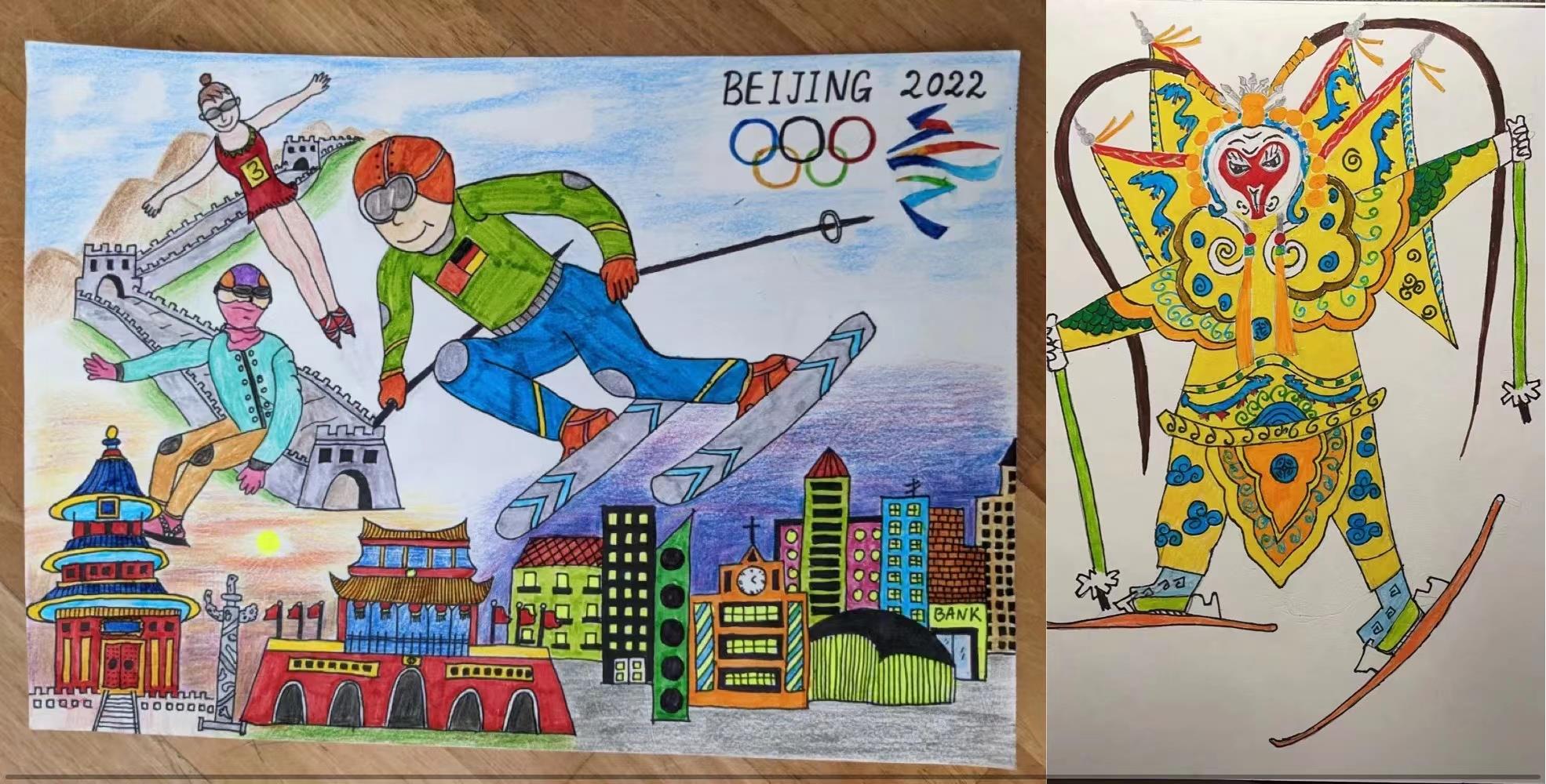 同學們在繪畫作品上寫滿了“Beijing 2022”“我愛中國”“中國是偉大的國家”“中加手拉手”,表達了他們對北京冬奧會最真摯美好的祝福。
